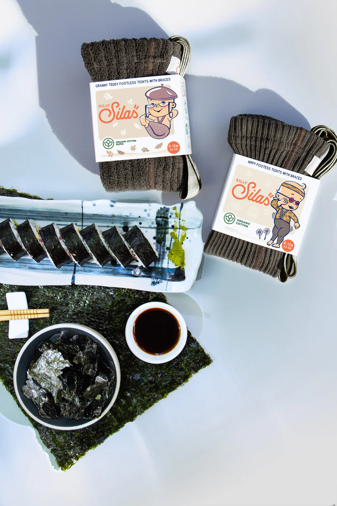 Silly Silas footless tights with braces will keep pace with even the most active babies and toddlers allowing them to explore the world around barefoot.